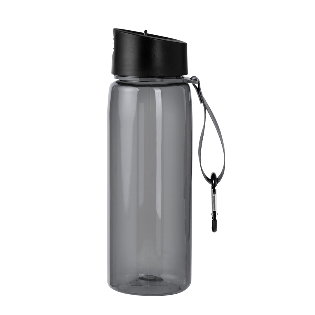 Bidón de 800 ml fabricado en resistente RPET y cuerpo de acabado transparente en variada gama de colores. Tapón negro de rosca, con dosificador y dosificador plegable. Con cinta de transporte a juego y mosquetón metálico para un cómodo transporte. Disponible en variada gama de colores.El material RPET se elabora a partir de plástico reciclado, para así fomentar la reutilización de residuos plásticos y ayudar a la sostenibilidad del planeta.