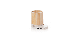 Lapicero multifunción 4 en 1 fabricado en bambú y fibra de trigo.Con funciones lapicero, soporte para smartphones, cargador inalámbrico 5W, puerto USB (2xUSB 2.0 y 1x tipo C) . Compatible con smartphones con tecnología de carga inalámbrica Qi. Incluye cable tipo C en color blanco de 1 metro de largo. Presentado en atractiva caja de diseño kraft. Disponible manual de instrucciones en español e inglés.Elaborado con elementos vegetales para así fomentar la utilización de materias primas naturales y reducir las emisiones contaminantes.