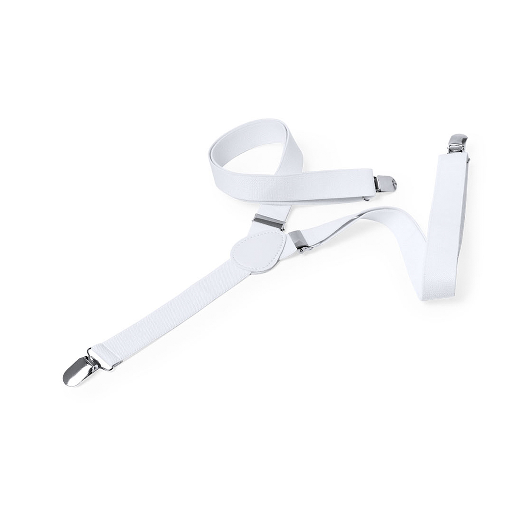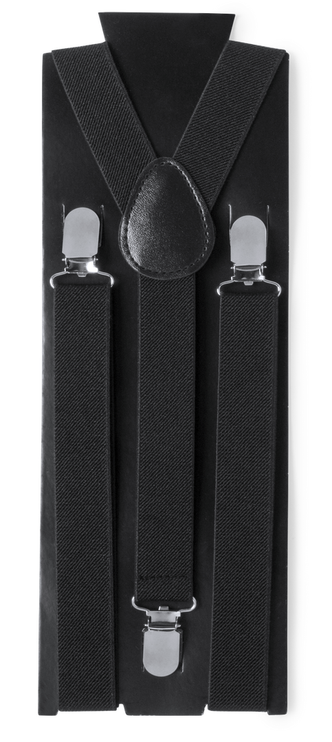 Tirántes elásticos de poliéster en sobrios colores con accesorios metálicos. Con refuerzo de polipiel en espalda a juego y presentados en original cartulina individual de color negro.