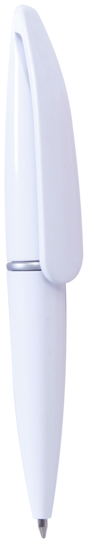 Mini bolígrafo de mecanismo giratorio en llamativos colores sólidos. Con original clip de gran tamaño y anilla central en color plateado. Tinta azul.