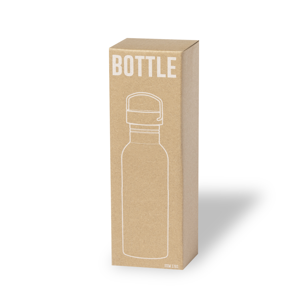 Bidón de 750 ml de capacidad, fabricado en acero inox de acabado brillo. Con original tapón a rosca en acero inox, a juego y con asa integrada. Libre de BPA y presentado en caja individual de diseño kraft.Disponible manual de instrucciones en español e inglés.