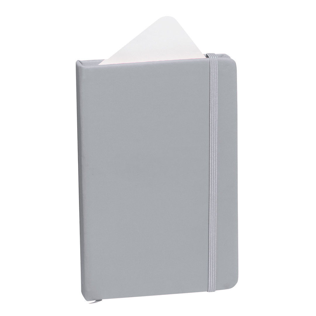 Bloc de notas con tapas duras fabricado en polipiel de suave tacto. Con marcapáginas disponible en variada gama de colores y elástico de cierre a juego. Interior con 100 hojas lisas.
