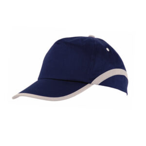 Gorra de 5 paneles en material 100% algodón. En variada gama de vivos colores, con ribete en visera y laterales. Orificios de ventilación bordados y cierre ajustable de velcro.