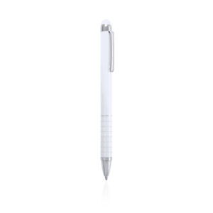 Bolígrafo puntero de mecanismo giratorio de elegante diseño bicolor con accesorios en color plateado brillante y cuerpo de suave acabado sólido en vivos colores metalizados. Con clip de aluminio y empuñadura de original diseño de anillas. Puntero a juego y tinta azul.