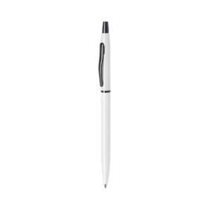 Bolígrafo de mecanismo pulsador en alegre diseño bicolor. Con cuerpo en aluminio de suave acabado en alegres colores. Accesorios y anillas en negro. Original clip en negro, de cartucho jumbo y tinta azul.
