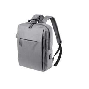 Mochila de negocios en resistente poliéster 600D. Con cierre de cremallera de doble tirador y multitud de bolsillos. Interior con bolsillo acolchado para ordenador portátil de hasta 15 pulgadas. Compartimento interior con salida USB para conexión de powerbank -no incluido-. Esquinas reforzadas, asa de transporte acolchada y accesorios en color negro. Espalda y cintas de hombros acolchadas y ajustables. Disponible en sobria gama de colores.