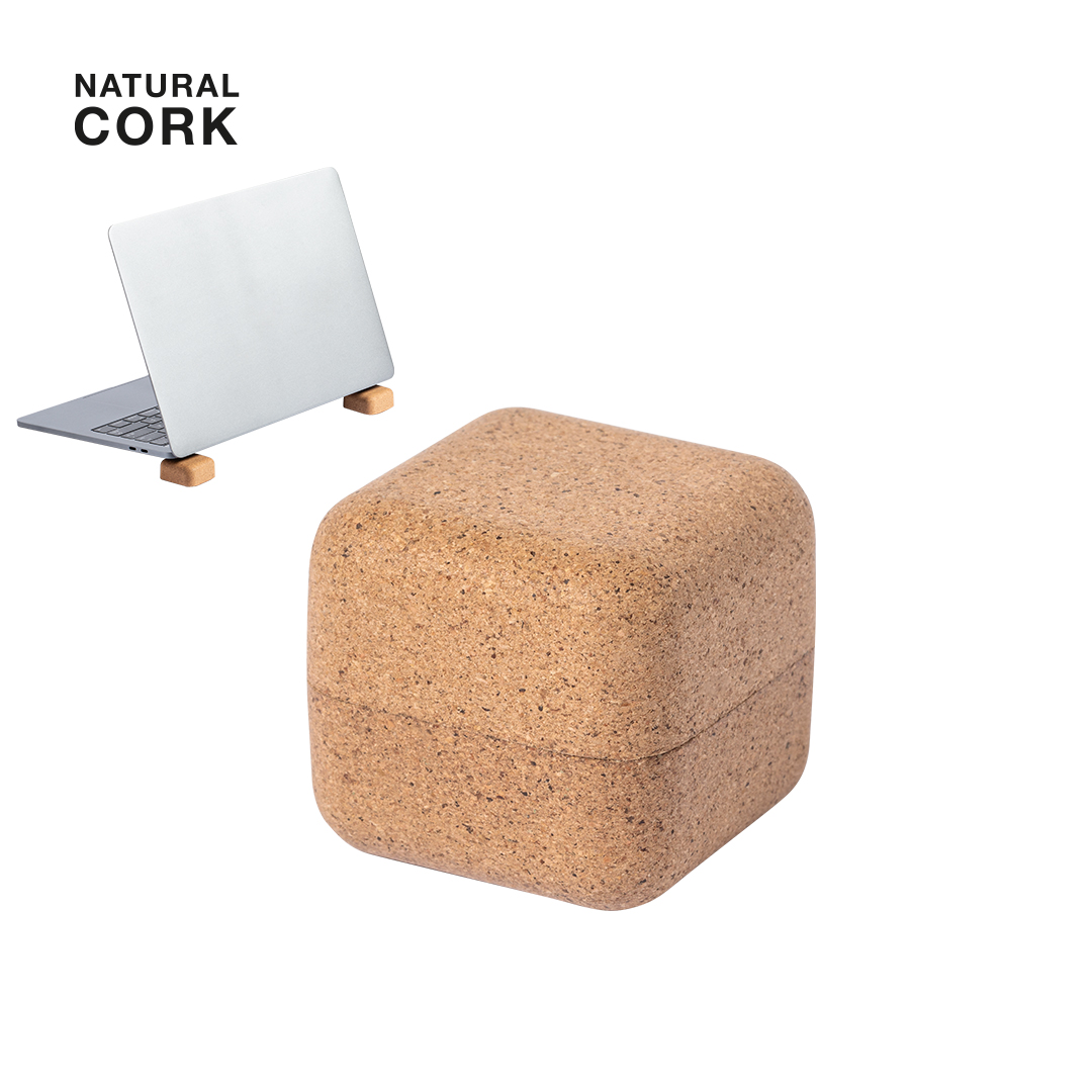 Compacto soporte de línea nature para ordenador portátil. Fabricado en corcho, para así fomentar la utilización de materias primas naturales y reducir las emisiones de contaminantes. Magnético y antideslizante, presentado en atractiva caja individual de diseño eco.