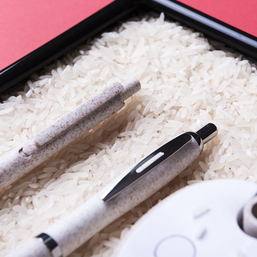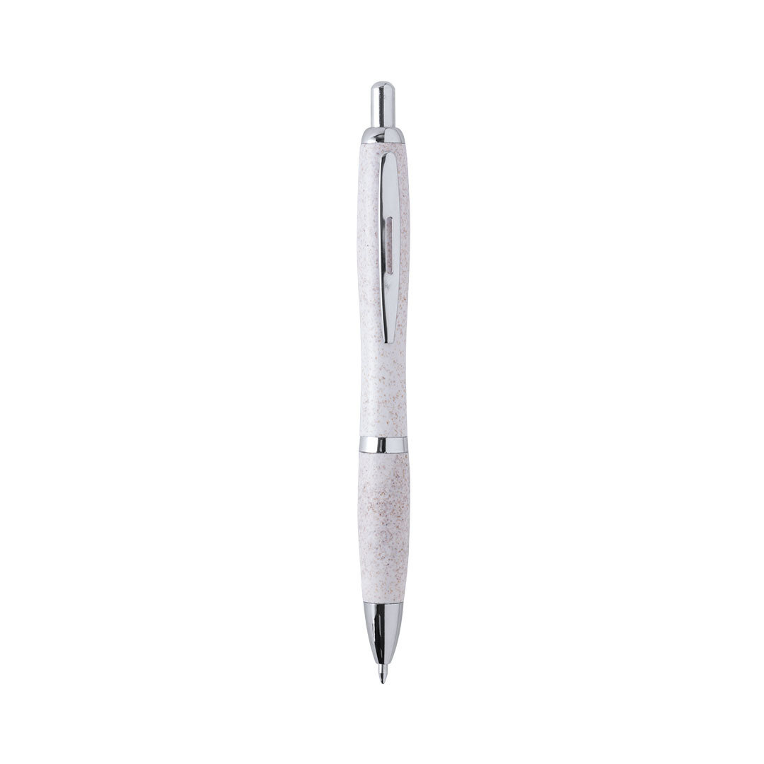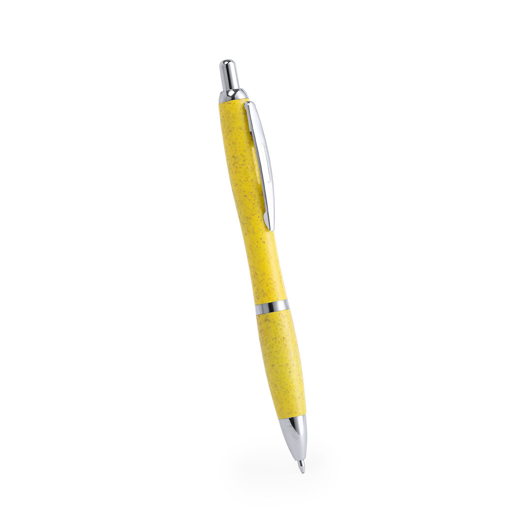 Bolígrafo de línea nature con cuerpo en caña de trigo, para así fomentar la utilización de materias primas naturales y reducir las emisiones contaminantes. De mecanismo pulsador, con detalles cromados y clip troquelado, cartucho jumbo y tinta azul. Disponible en variada gama de colores.