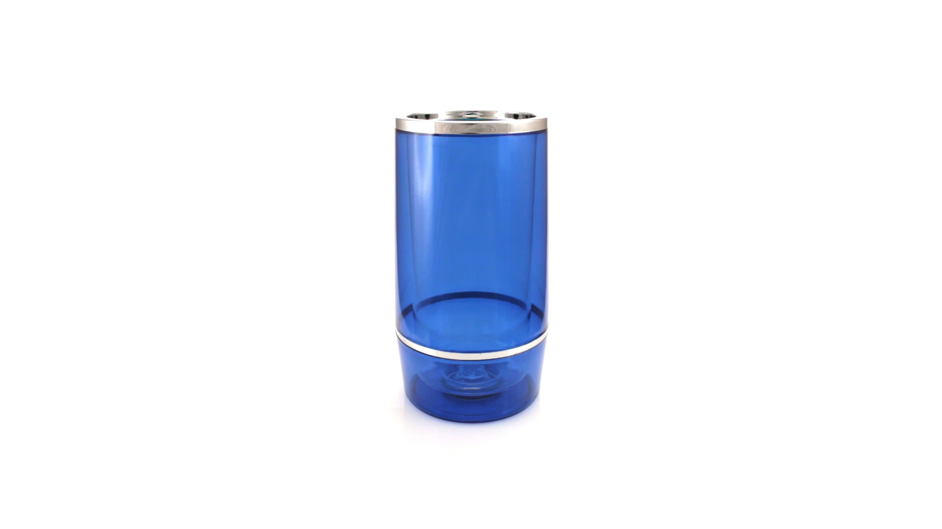 Botellero para botellas de vino de hasta 75 cl en original acabado transparente en variados colores. Con anillas en color plateado brillante y base adaptada para botella. Presentado en caja individual.