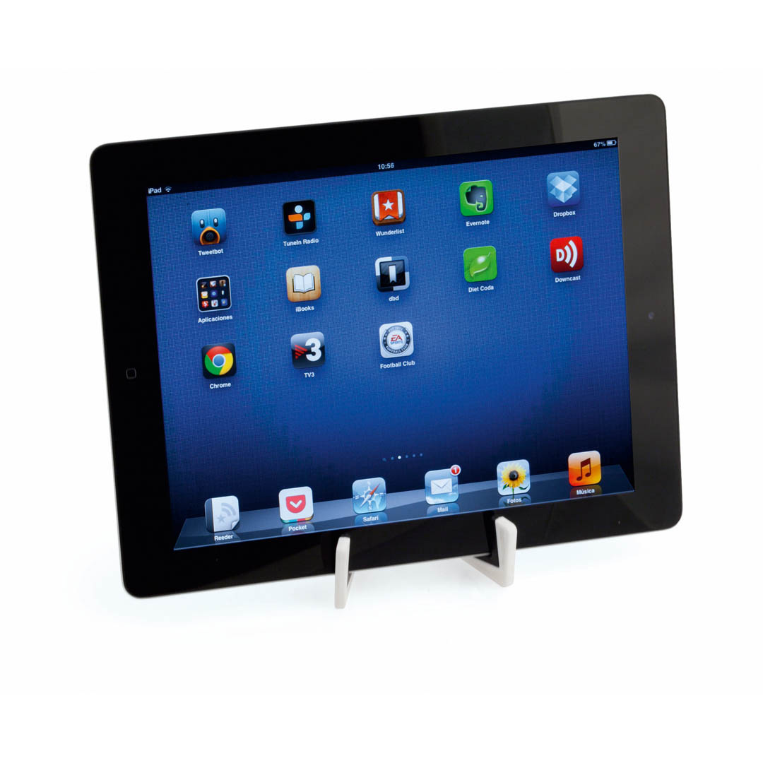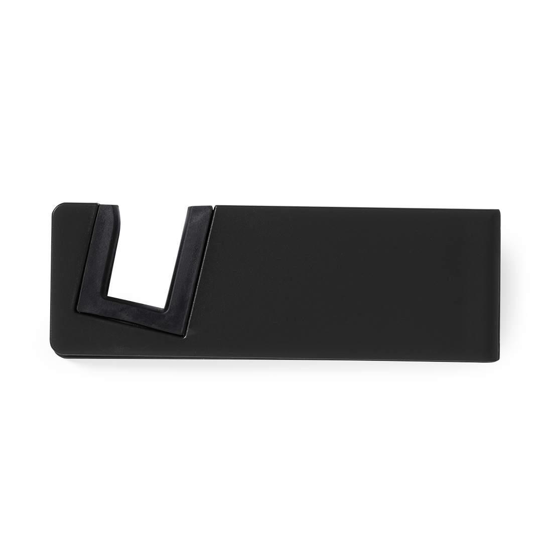 Soporte para dispositivo móvil de patas plegables y topes anideslizantes en PVC. En atrevidos colores y especialmente diseñado para marcaje en tampografía.