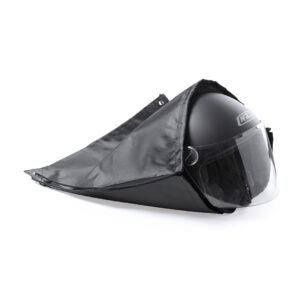 Mochila de cuerdas en suave poliéster 210D especialmente diseñada para cascos de motociclistas. Con cuerdas autocierre en color negro y esquinas con argollas metálicas y refuerzo de polipiel a juego.