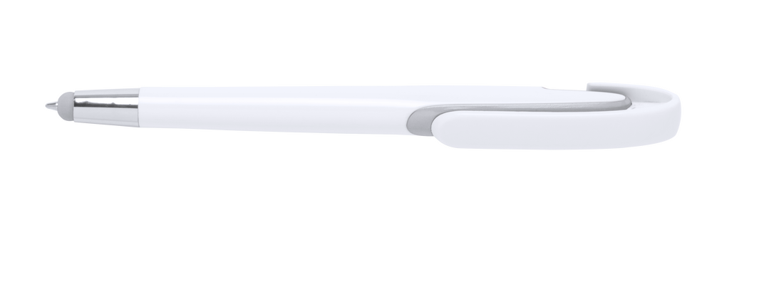 Bolígrafo puntero de mecanismo pulsador con cuerpo de acabado brillante en color blanco y accesorios en variada gama de vivos colores. Con clip maxi y tinta azul.